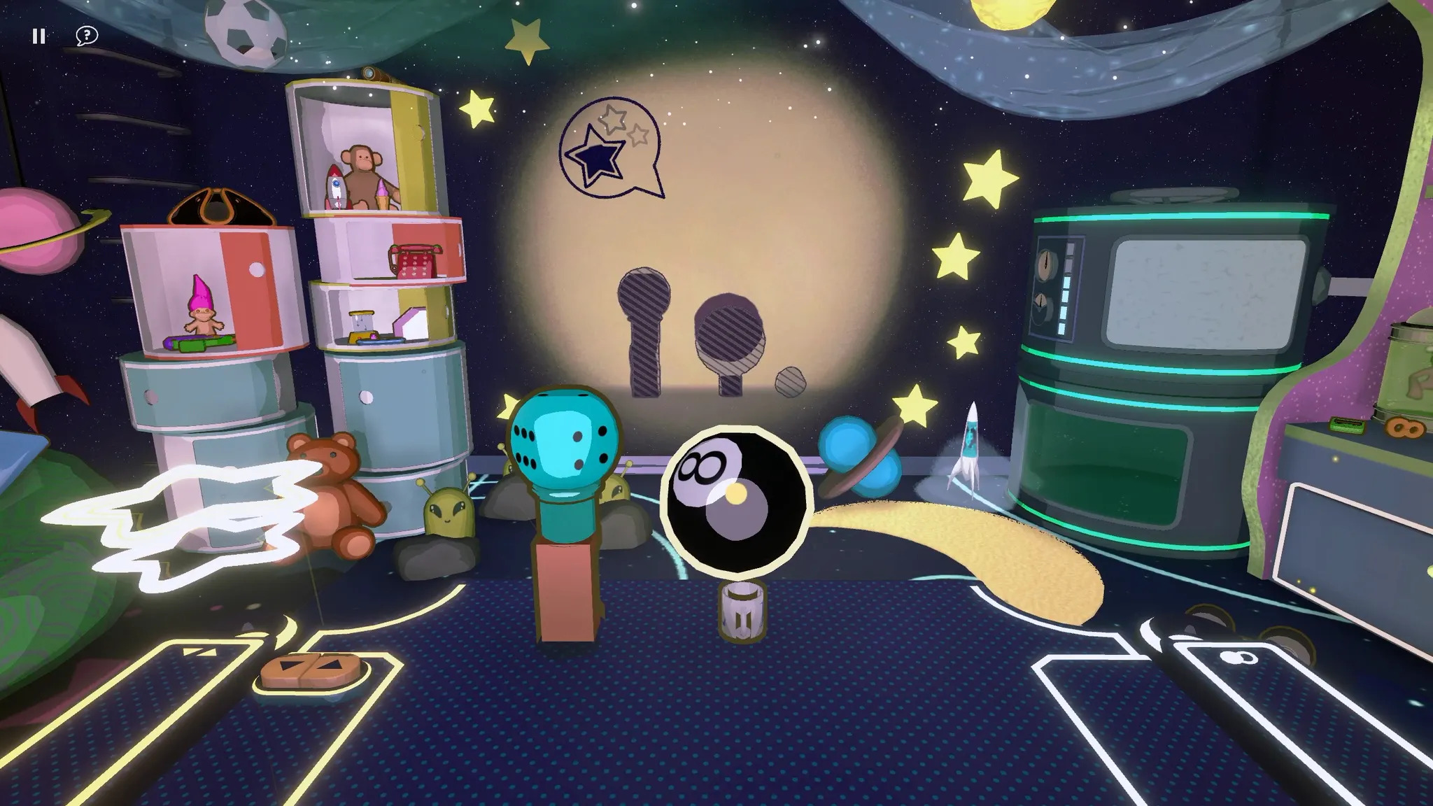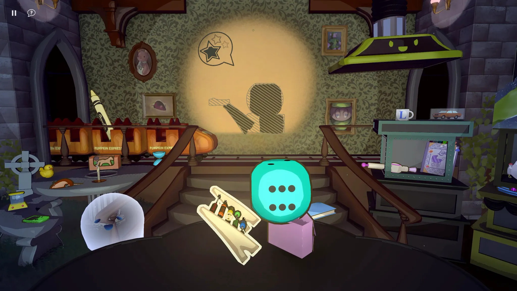 In Projected Dreams, you drag toys from the shelves and drop them on the table to create a shadow play.